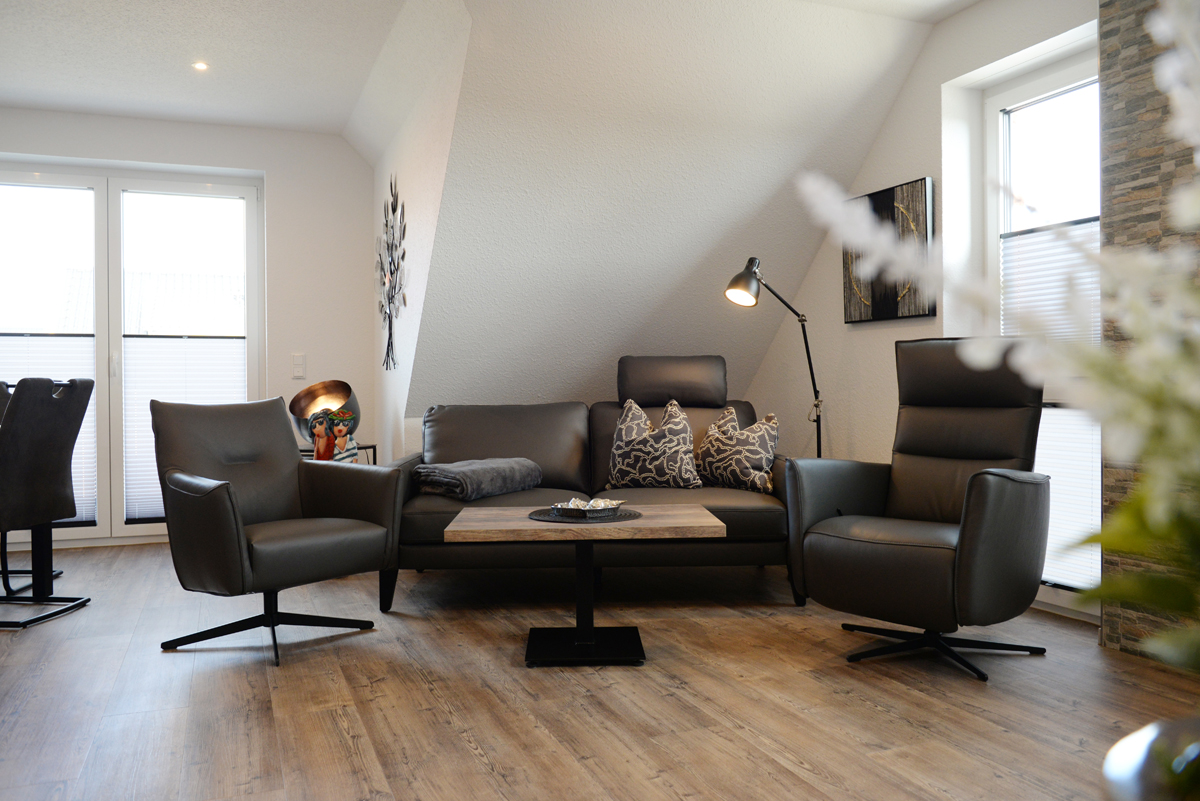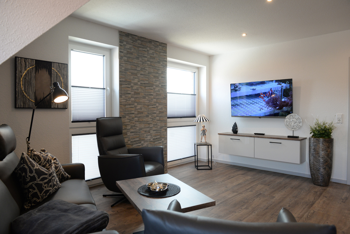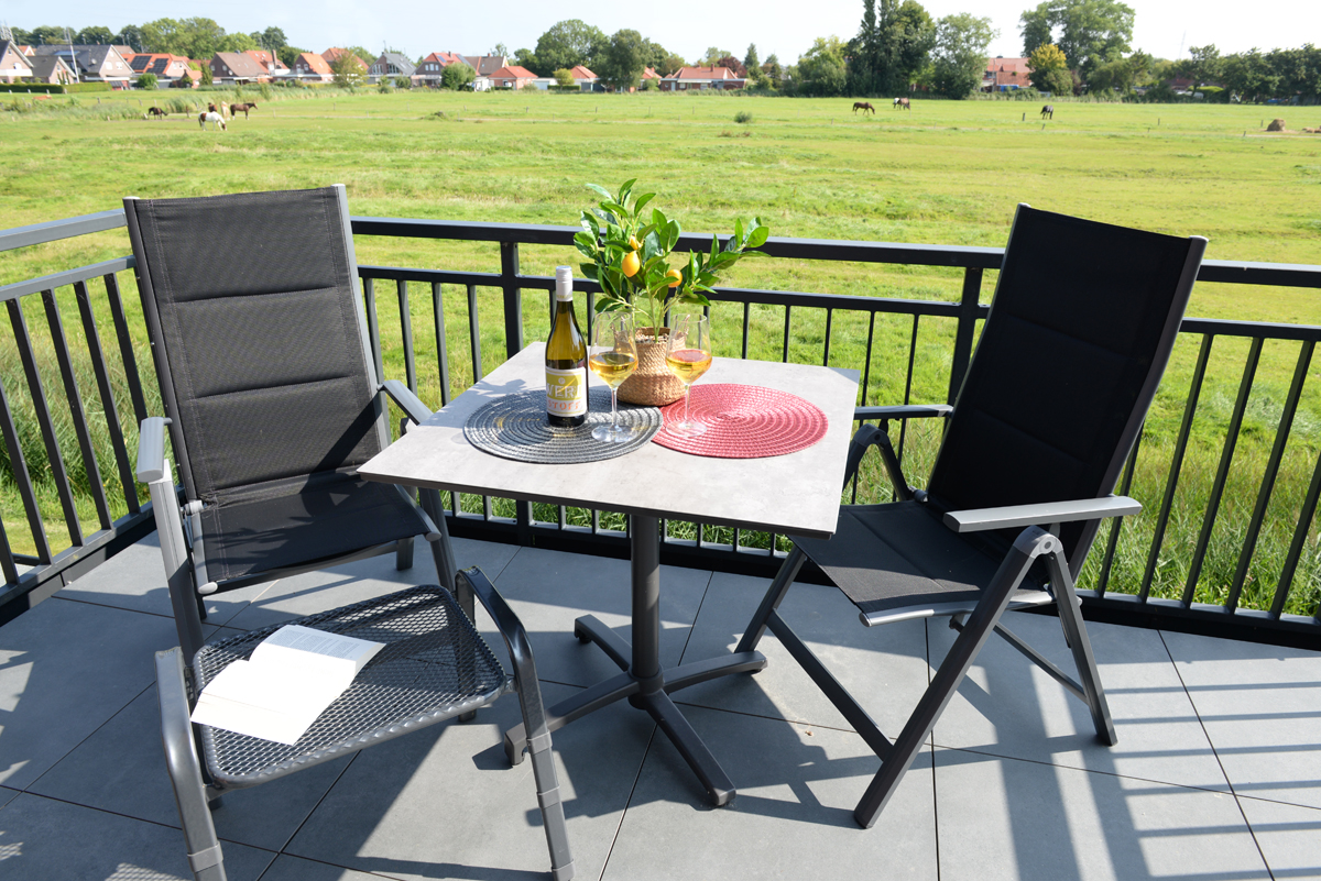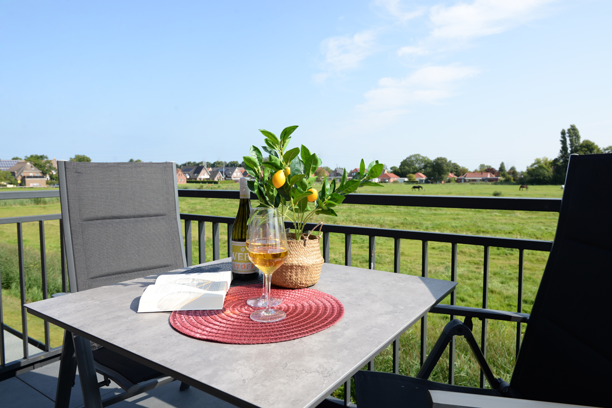 Die Ferienwohnung Deichdeck 3 OR für 2 Personen befindet sich im 1. OG eines neu erbauten Ferienhauses mit insgesamt 4 Ferienwohnungen in Norddeich. Die Wohnung liegt in einer zentralen und sackgassenähnlichen Lage. Das Wohn/Esszimmer ist mit einer gemütlichen Couch u. 2 Sessel, einem Flachbildschirm-Fernseher, einer Essgruppe und einer voll ausgestatteten Einbauküche eingerichtet. Von dort aus gelangen Sie auf einem Balkon, der mit Gartenmöbeln und einem Sonnenschirm ausgestattet ist. Dieses Plätzchen lädt Sie zum Sonnenbaden oder für den späteren Sonnenuntergang am Abend ein.