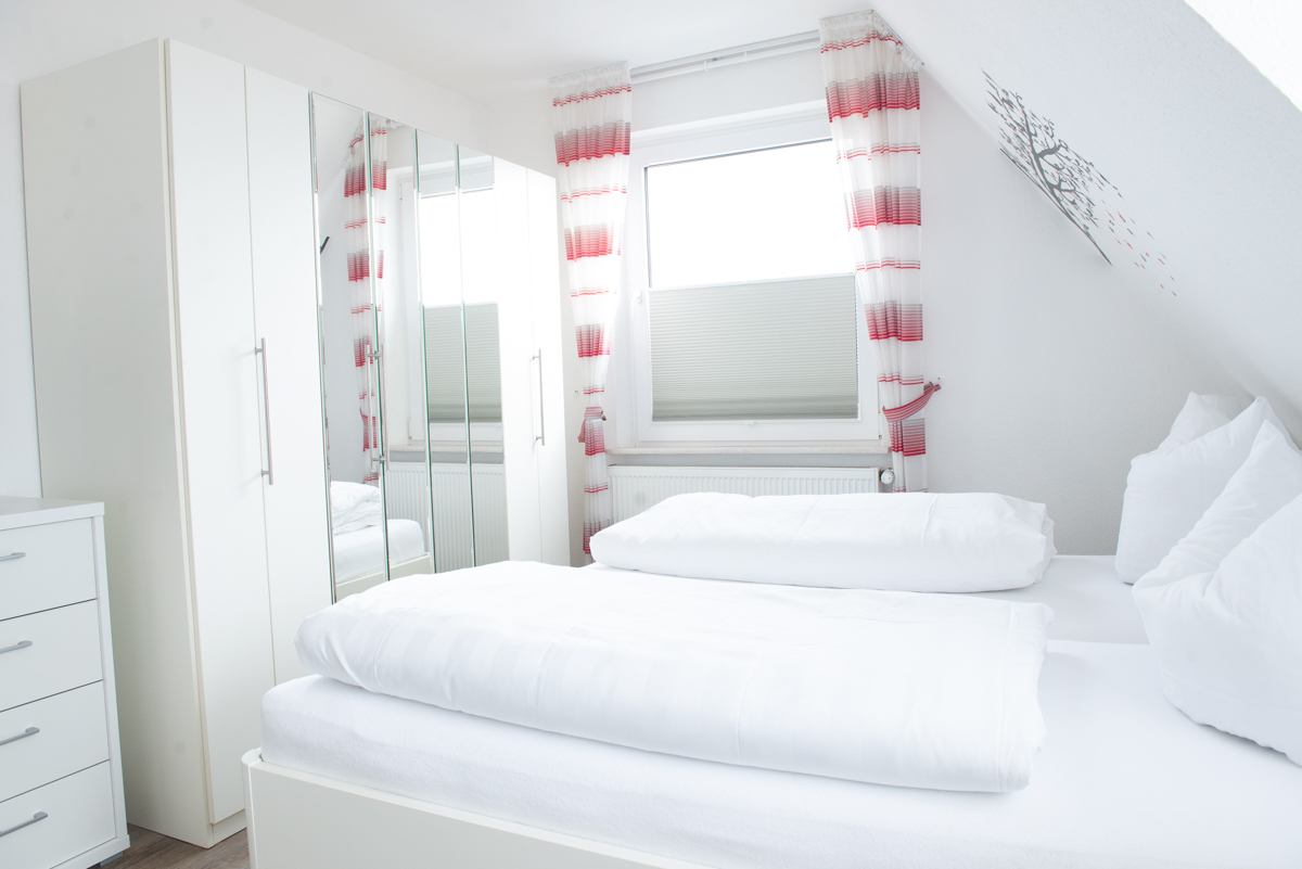 Über eine gemütliche Holztreppe gelangen Sie ins 2. OG mit zwei getrennten Schlafzimmern, mit je 1 Doppelbett - beide Schlafzimmer sind entweder mit Außenrolläden und Verdunklungsplissees ausgestattet. In einem Schlafzimmer befindet sich an der Wand ein Flachbildschirm Sat/TV.