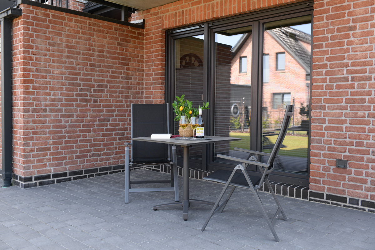 Die Ferienwohnung Deichdeck 2 UL für 2 Personen befindet sich im Erdgeschoss eines neu erbauten Ferienhauses mit insgesamt 4 Ferienwohnungen in Norddeich. Die Wohnung hat einen eigenen separten Hauseingang und liegt in einer zentralen und sackgassenähnlichen Lage . Das Wohn/Esszimmer ist mit einer gemütlichen Couch u. 2 Relaxsessel, einem Flachbildschirm-Fernseher, einer Essgruppe und einer voll ausgestatteten Einbauküche eingerichtet. Von dort aus gelangen Sie auf eine teilweise überdachte Terrasse, die mit Gartenmöbeln und Sonnenschirm ausgestattet ist. Dieses Plätzchen lädt sie zum Sonnenbaden oder für den späteren Sonnenuntergang am Abend ein.