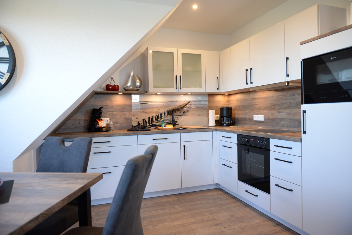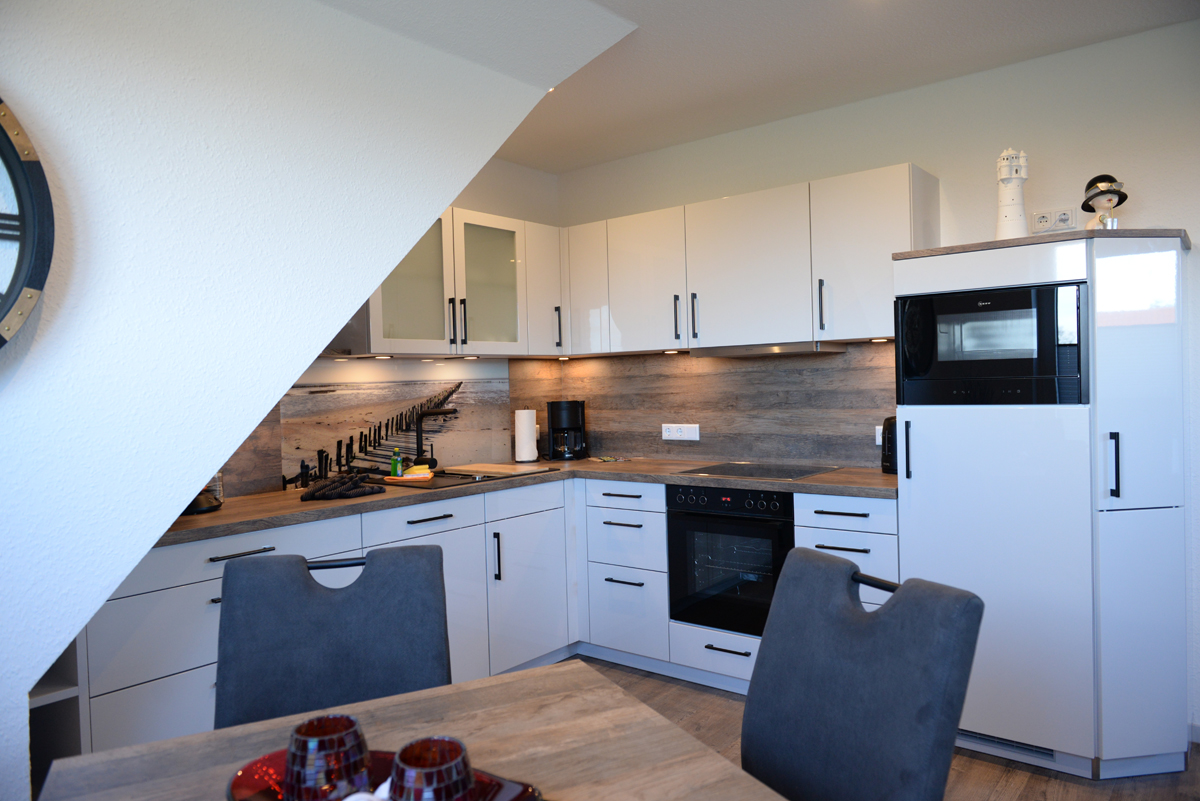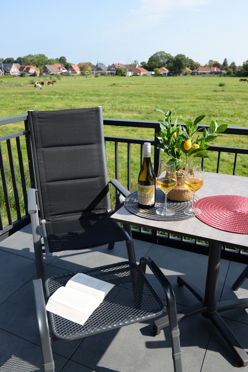 Die Ferienwohnung Deichdeck 3 OL für 2 Personen befindet sich im 1. OG eines neu erbauten Ferienhauses mit insgesamt 4 Ferienwohnungen in Norddeich. Die Wohnung liegt in einer zentralen und sackgassenähnlichen Lage. Das Wohn/Esszimmer ist mit einer gemütlichen Couch u. 2 Sessel, einem Flachbildschirm-Fernseher, einer Essgruppe und einer voll ausgestatteten Einbauküche eingerichtet. Von dort aus gelangen Sie auf einem Balkon, der mit Gartenmöbeln und einem Sonnenschirm ausgestattet ist. Dieses Plätzchen lädt Sie zum Sonnenbaden oder für den späteren Sonnenuntergang am Abend ein.