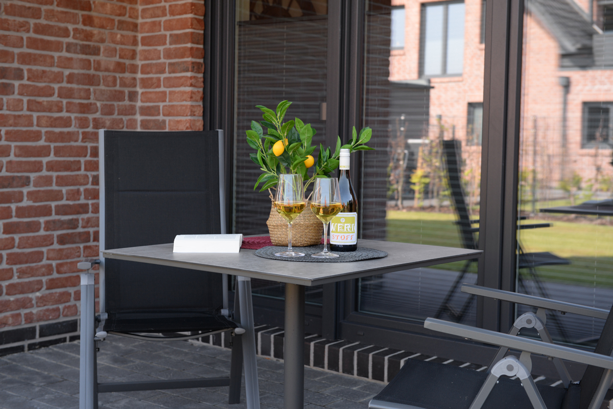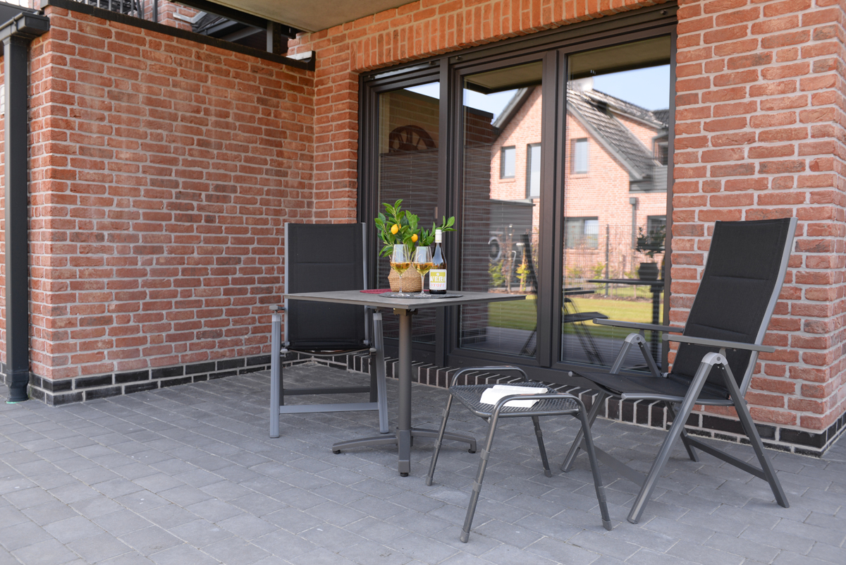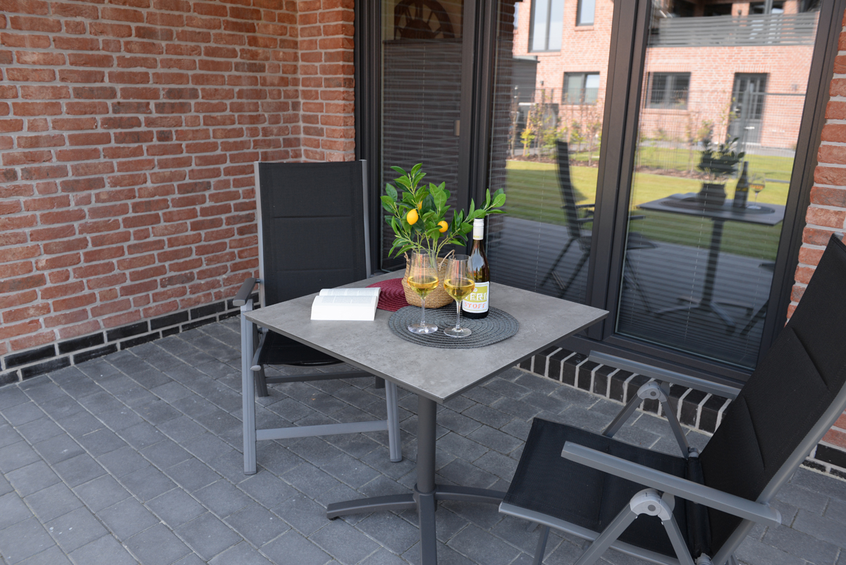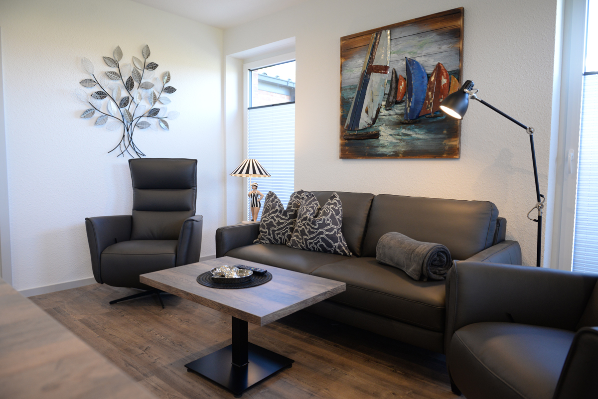 Die Ferienwohnung Deichdeck 3 UL für 2 Personen befindet sich im Erdgeschoss eines neu erbauten Ferienhauses mit insgesamt 4 Ferienwohnungen in Norddeich. Die Wohnung liegt in einer zentralen und sackgassenähnlichen Lage . Das Wohn/Esszimmer ist mit einer gemütlichen Couch u. 2 Relaxsessel, einem Flachbildschirm-Fernseher, einer Essgruppe und einer voll ausgestatteten Einbauküche eingerichtet. Von dort aus gelangen Sie auf eine teilweise überdachte Terrasse, die mit Gartenmöbeln und Sonnenschirm ausgestattet ist. Dieses Plätzchen lädt sie zum Sonnenbaden oder für den späteren Sonnenuntergang am Abend ein.