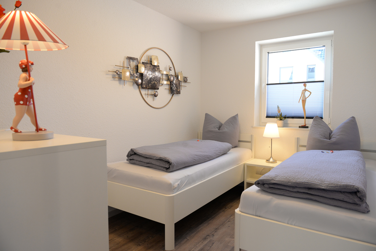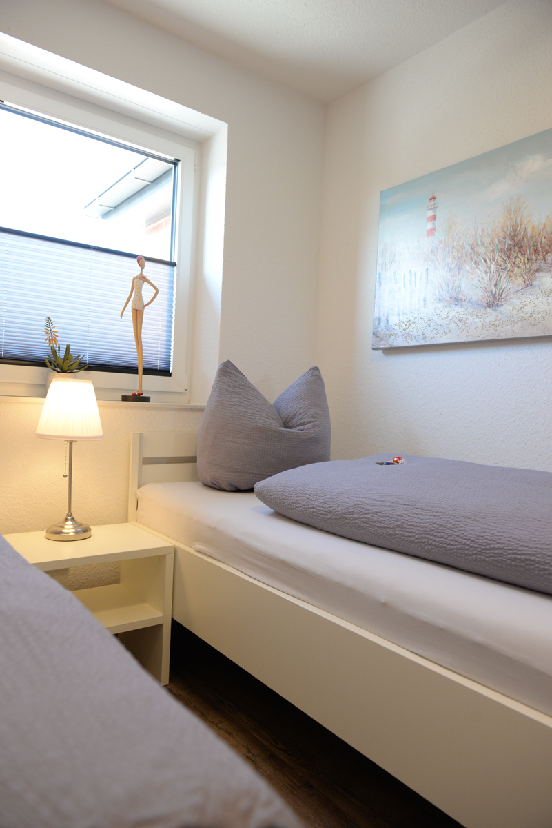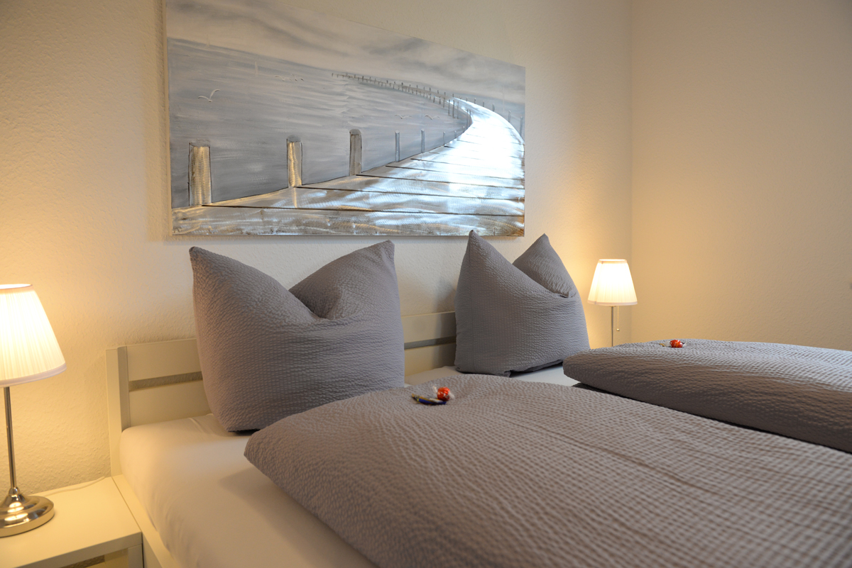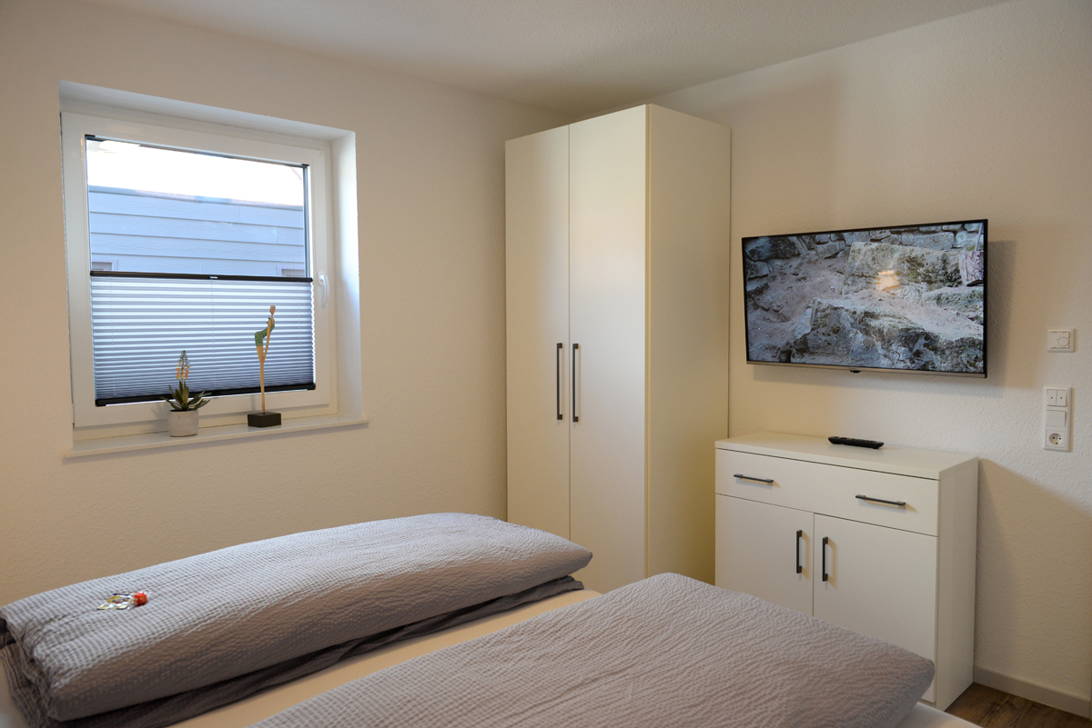 Die Wohnung verfügt über zwei getrennte Schlafzimmer, davon ist ein Schlafzimmer mit Doppelbett, SAT/TV und das weitere Schlafzimmer dient als Schnarch- bzw. Ausweichzimmer. Zusätzlich besitzen beide Zimmer Fenster mit elektrischen Außenjalousien.
