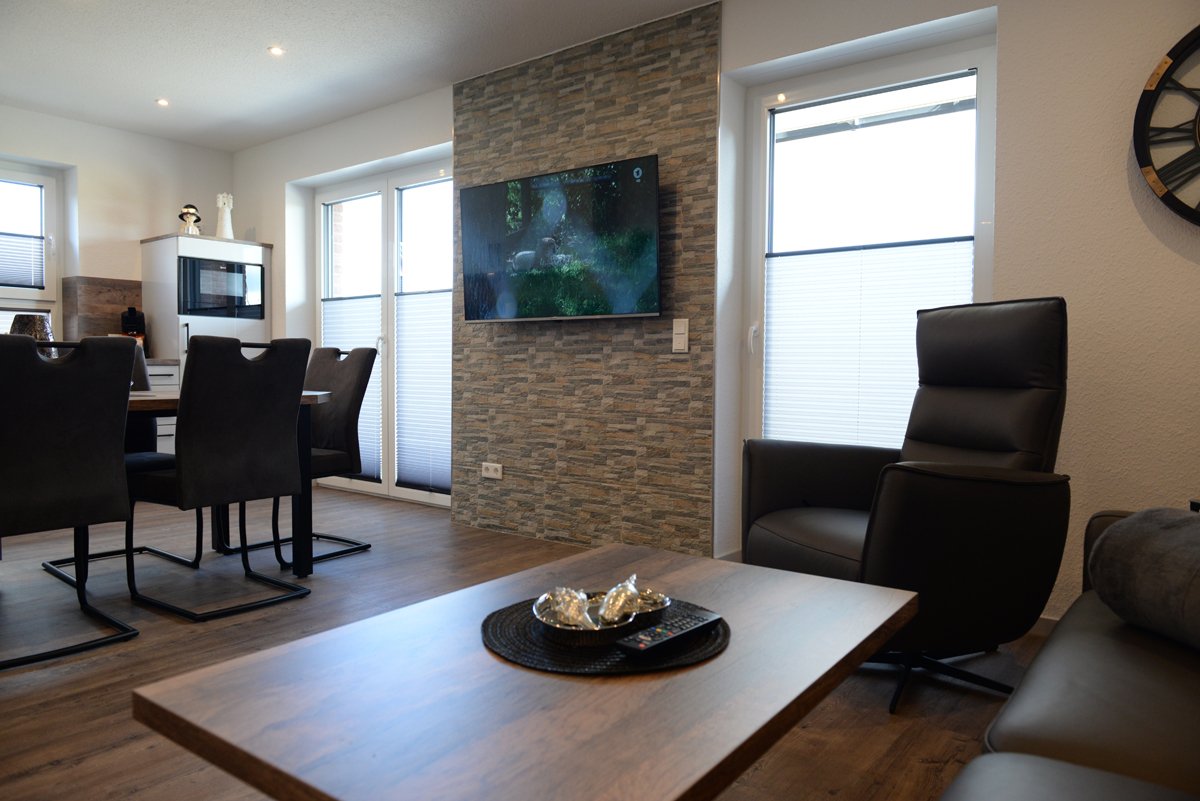 Diese Wohnung befindet sich gerade in den letzten Zügen der Fertigstellung und könnte ab dem 01. November 2025 gebucht werden.Wir freuen uns auf Ihre Anfrage. Die Ferienwohnung Deichdeck 4 UL für 2 Personen befindet sich im Erdgeschoss eines neu erbauten Ferienhauses mit insgesamt 4 Ferienwohnungen in Norddeich. Die Wohnung hat einen eigenen separten Hauseingang und liegt in einer zentralen und sackgassenähnlichen Lage . Das Wohn/Esszimmer ist mit einer gemütlichen Couch u. 2 Relaxsessel, einem Flachbildschirm-Fernseher, einer Essgruppe und einer voll ausgestatteten Einbauküche eingerichtet. Von dort aus gelangen Sie auf eine teilweise überdachte Terrasse, die mit Gartenmöbeln und Sonnenschirm ausgestattet ist. Dieses Plätzchen lädt sie zum Sonnenbaden oder für den späteren Sonnenuntergang am Abend ein.