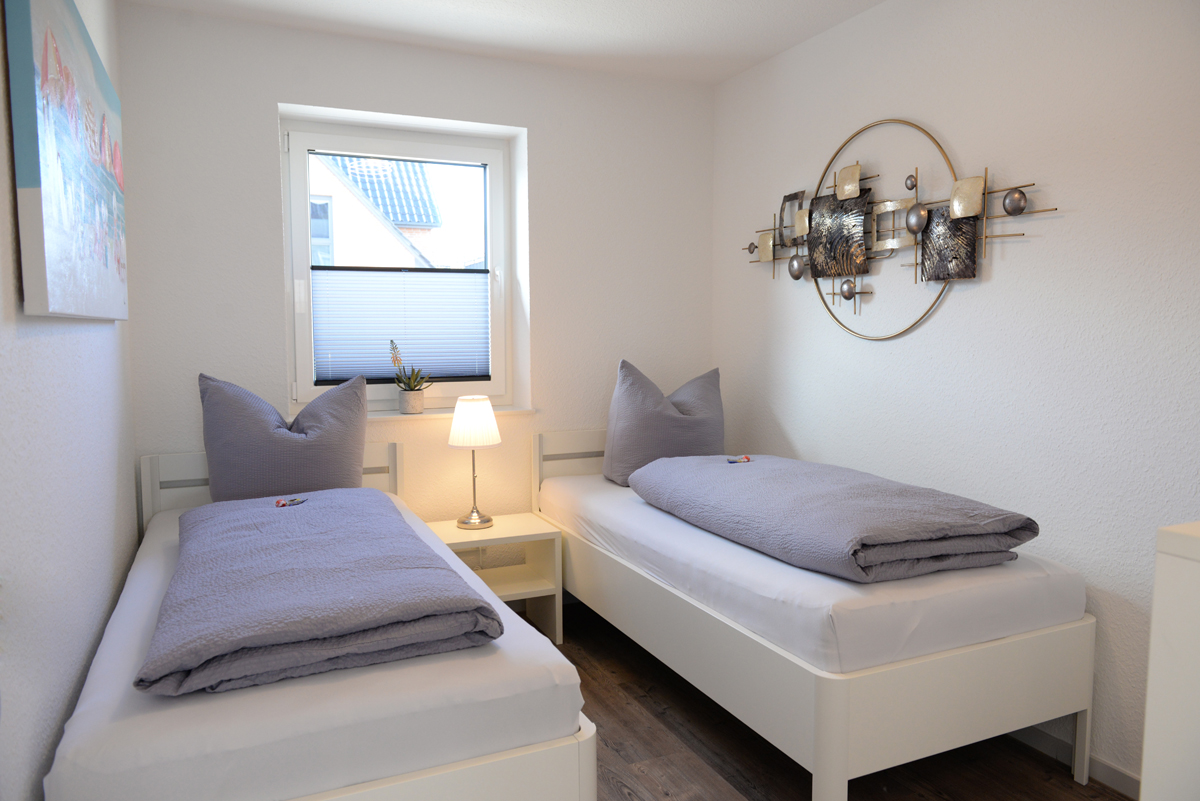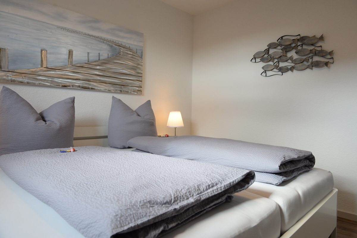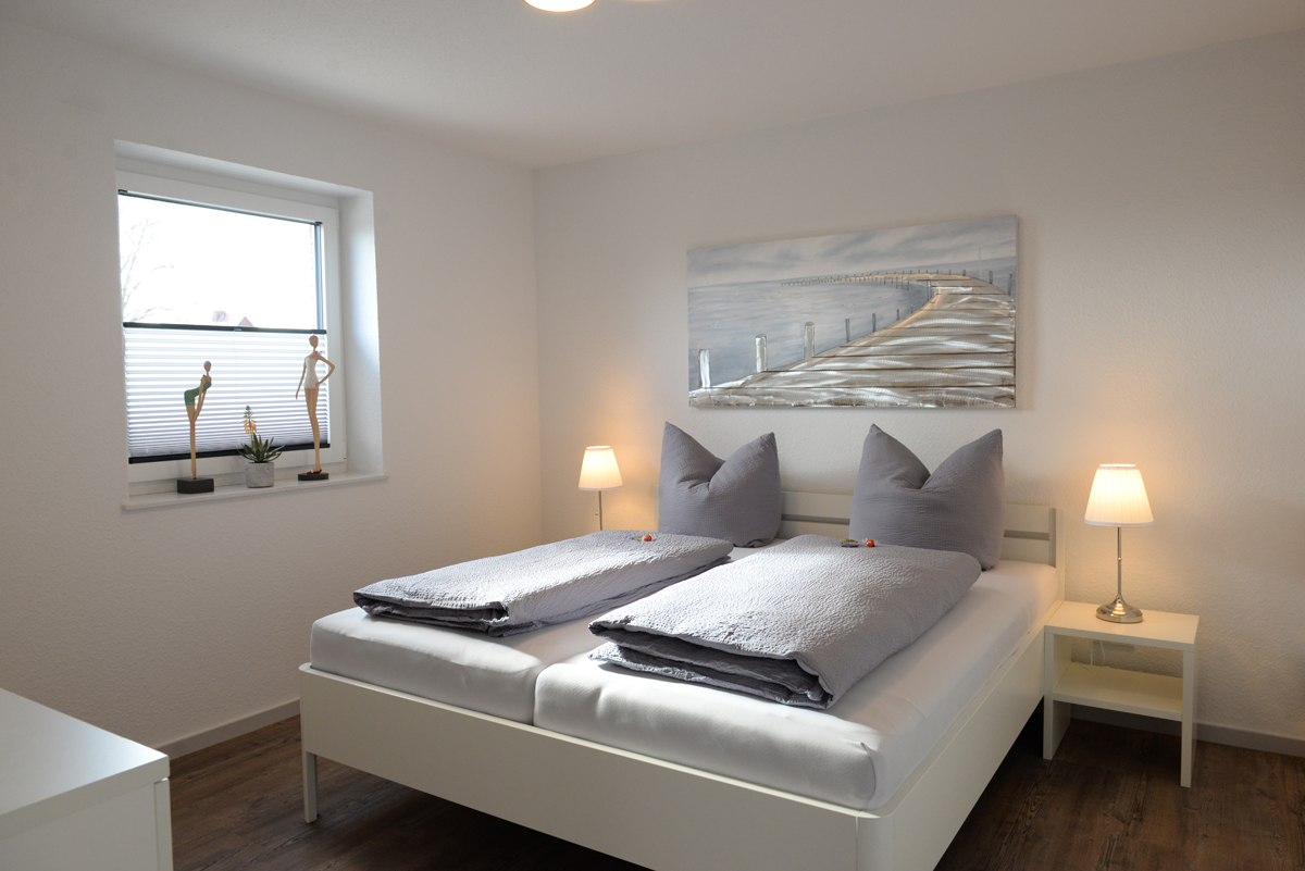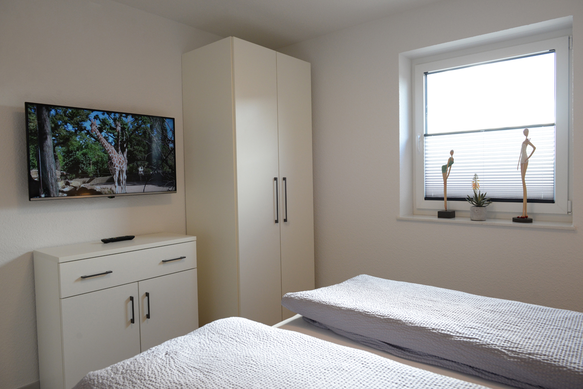 Die Wohnung verfügt über zwei getrennte Schlafzimmer, davon ist ein Schlafzimmer mit Doppelbett, SAT/TV und das weitere Schlafzimmer dient als Schnarch- bzw. Ausweichzimmer. Zusätzlich besitzen beide Zimmer Fenster mit elektrischen Außenjalousien.