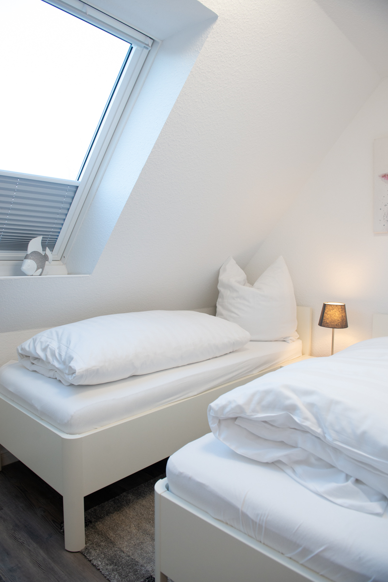 Das große Schlafzimmer ist mit einem Doppelbett, Sat/TV, Fenster mit elektrischen Außenrolläden ausgestattet. Das weitere Schlafzimmer dient als Schnarch - bzw. Ausweichzimmer, welches ein Veluxfenster + Verdunklungsplissees besitzt.