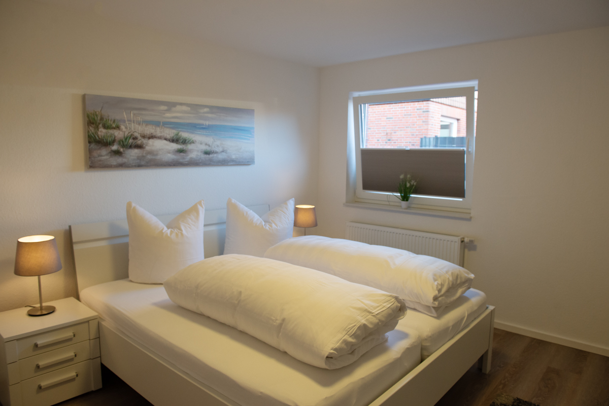 Die Wohnung verfügt über zwei getrennte Schlafzimmer, davon ist ein Schlafzimmer mit Doppelbett, Sat/TV - und das weitere Schlafzimmer mit einem Einzelbett ausgestattet., Zusätzlich besitzen beide Zimmer jetzt neu Außenrolläden.