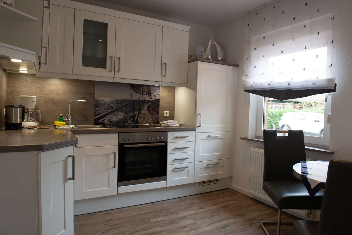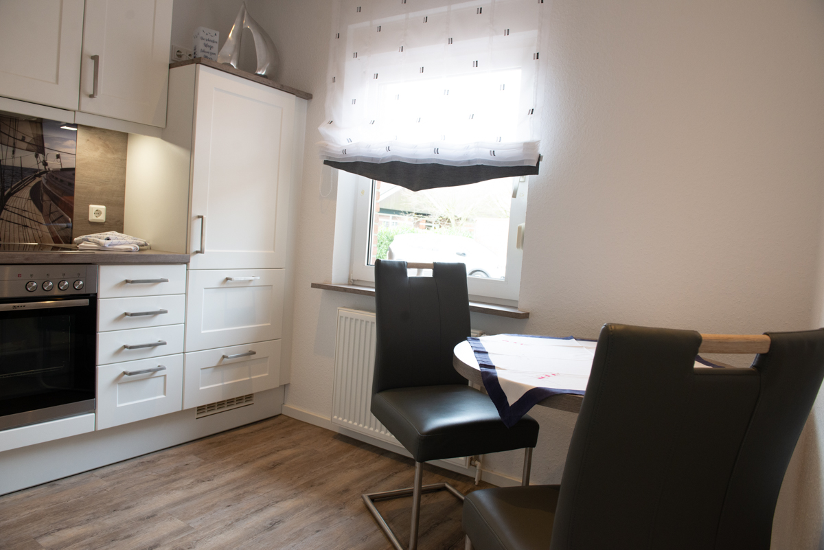 Die gemütliche Ferienwohnug Gorch Fock liegt im Gartenbereich unseres Appartementhauses "Kap - Hoorn" mit eigenem Hauseingang und einer schönen Sonnenterrrasse.