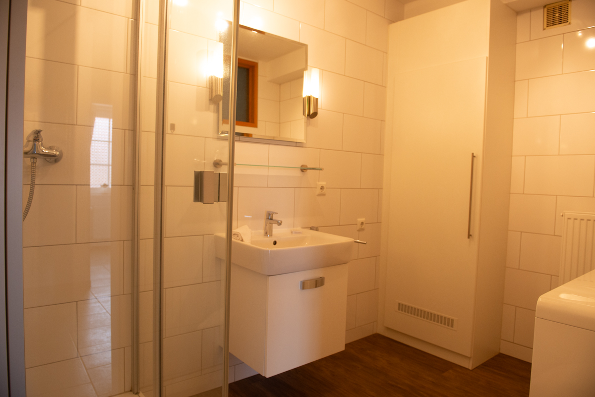 Ebenfalls im 1.OG befindet sich das Bad mit Dusche und einem separaten WC.